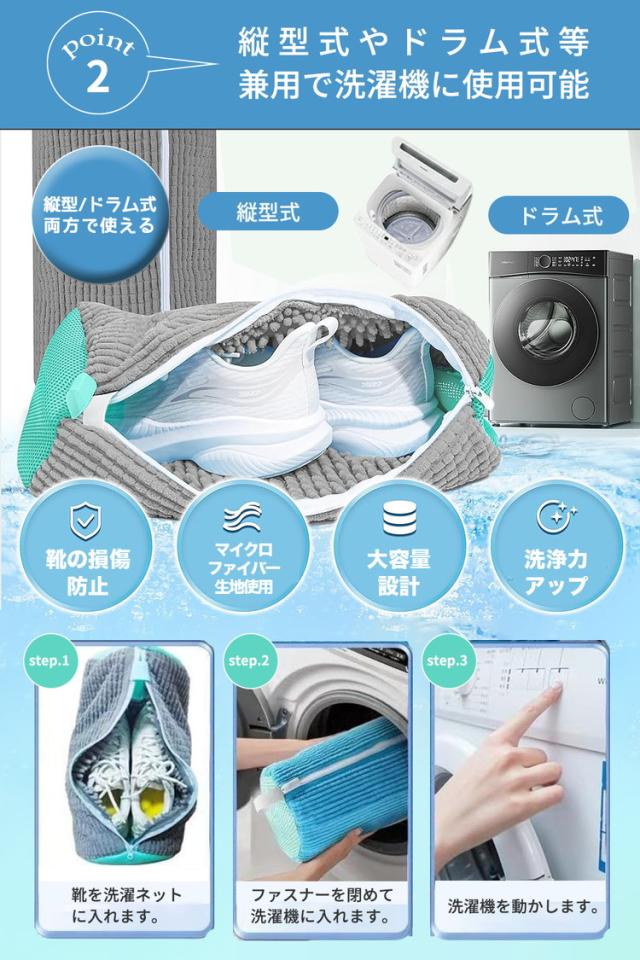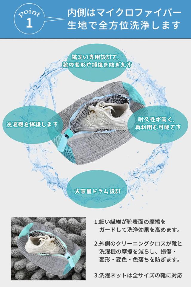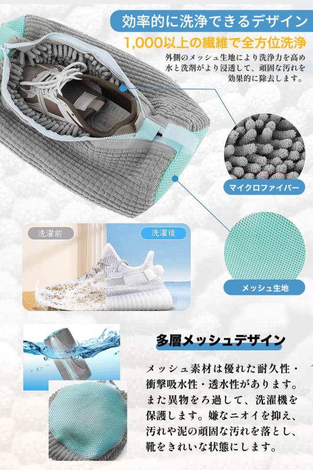 (約)1,000本以上のマイクロファイバー生地で、全方位洗浄する靴専用洗濯ネットです