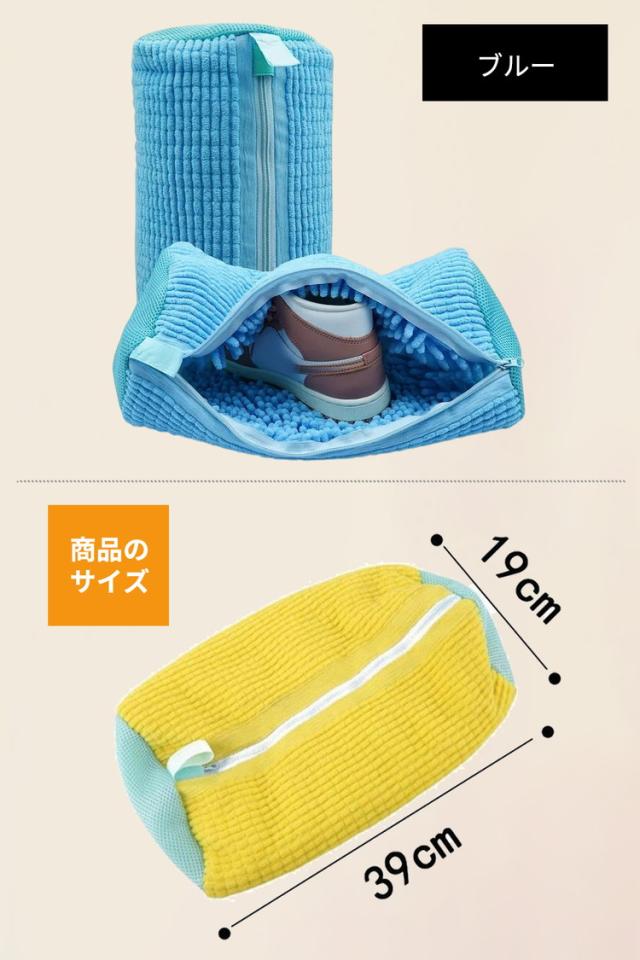 (約)19cm×39cmの大容量設計なので、スニーカーや上履きをそのまま入れて洗濯機をまわすことができます