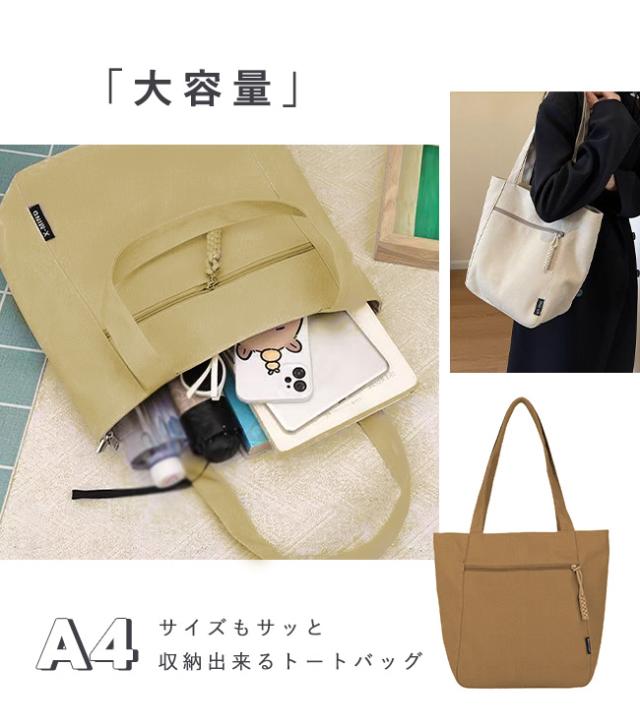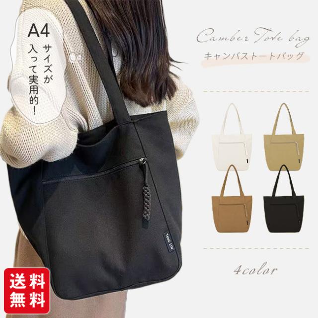 2点ご購入で100円OFF! キャンバストートバッグ レディース 肩掛けバッグ かばん カバン チャック付き 手提げかばん 自立 A4 大容量 無地 通勤 通学 オフィス かわいい おしゃれ カジュアル