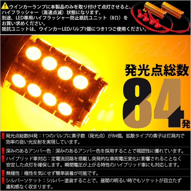 ◆ウインカーランプに本製品のみを取り付けて点灯させると、ハイフラッシャー(高速点滅)状態になります。別途、LED専用ハイフラッシャー防止抵抗ユニット(8Ω)をお買い求めください。抵抗ユニットは、ウインカーLEDバルブ1個につき1つご使用ください。