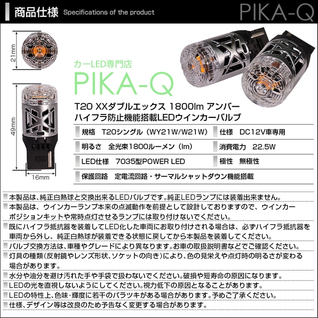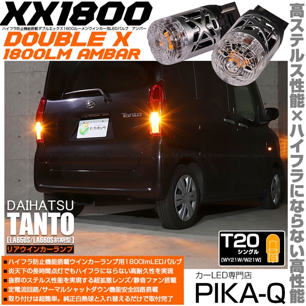ピカキュウ,LED専門店,LEDバルブ,SMD,LED,T20S,T20シングル,ターンシグナルランプ,ハイフラ抵抗内蔵LEDウインカーバルブ,ハイフラ不要,抵抗不要,ポン付け,アンバー,全光束1800lm,XX,ダブルエックス,ダイハツ,DAIHATSU,タント,TANTO,LA650S,LA660S,標準