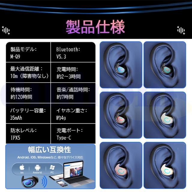 睡眠用 寝ホン ワイヤレスイヤホン 新作 Bluetooth5.3 ブルートゥース コードレスイヤホン 音漏れ防ぐ 片耳 右耳付き スポーツ 超軽量 ハンズフリー