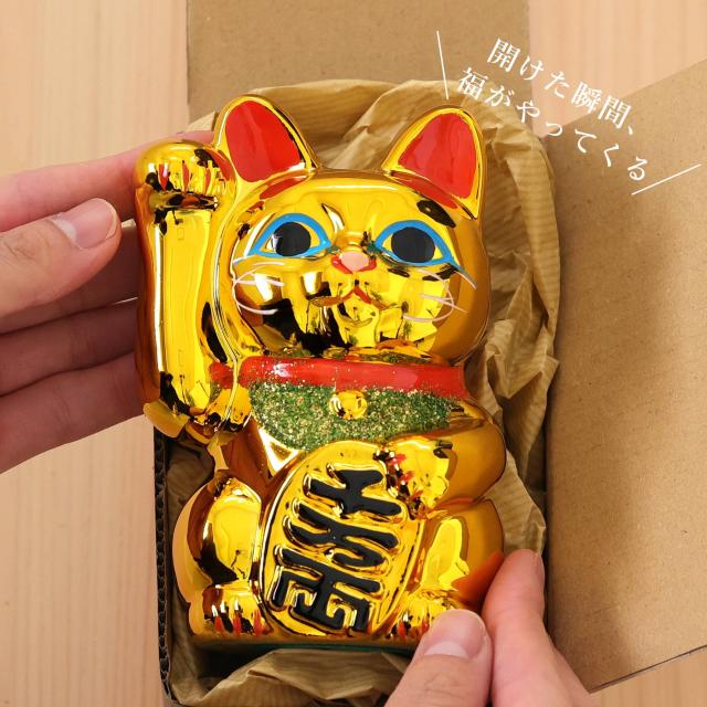 招き猫 常滑焼 貯金箱 金 4号 12.5cm 選べる右手 左手 陶器製 貯金箱 開運グッズ 縁起物 日本製 和風インテリア 開店祝い ギフト