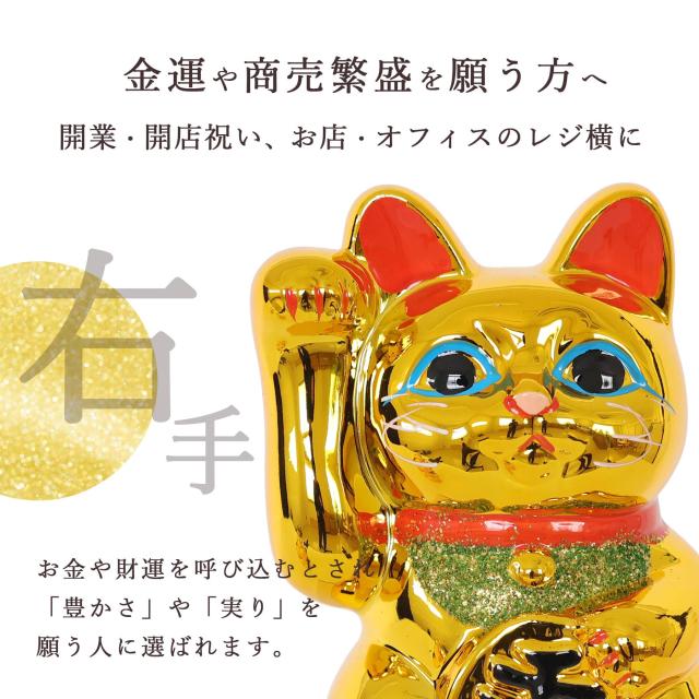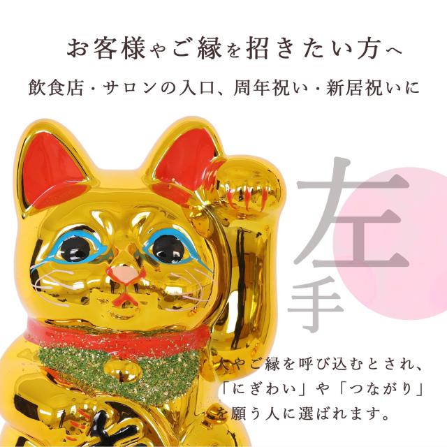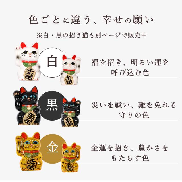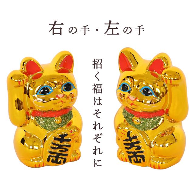 右手を挙げた猫は「金運・商売繁盛」、左手は「人やご縁を招く」と言われ、願いや用途に合わせてお選びいただけます。