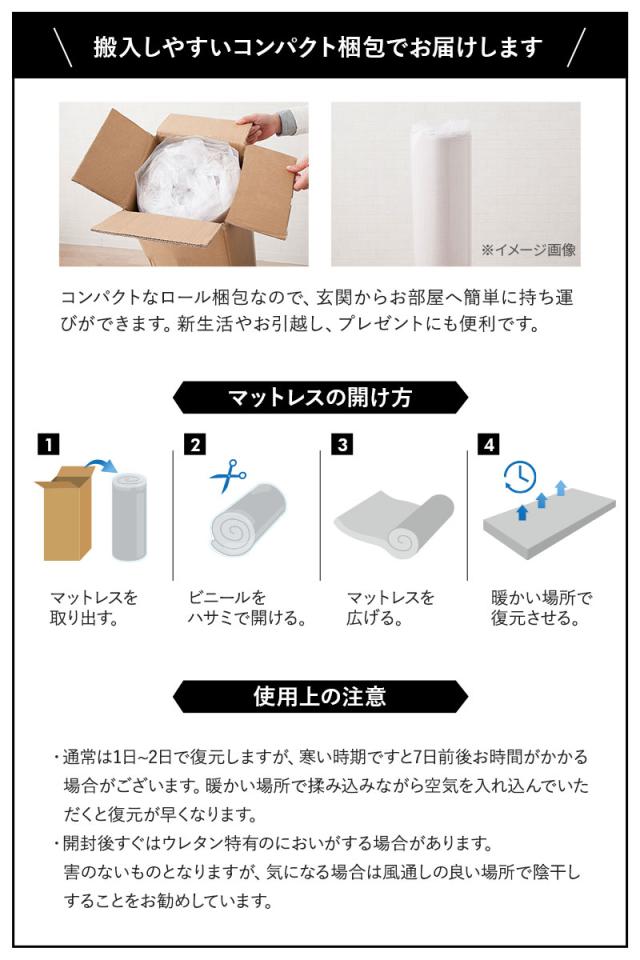 セミダブルサイズ:約幅120×奥行195×厚さ5cm