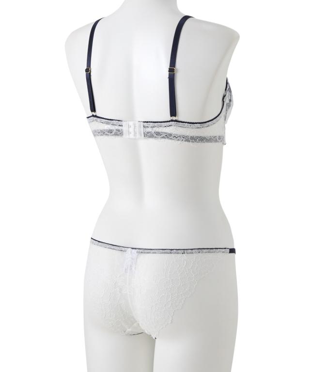 厚盛りパッドが大人の綺麗な谷間をメイク ゴージャスなレースが落ち着きながらも洗練された雰囲気を演出 胸中心とショーツのチャームがワンランク上のエレガントに! ショーツのバックレースが大人セクシーさを際立て、両サイドテープの細見え効果