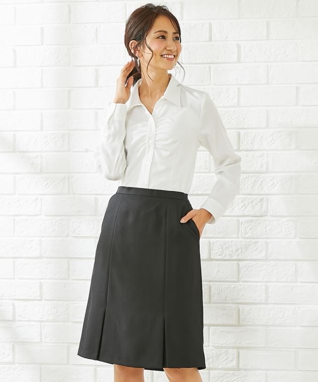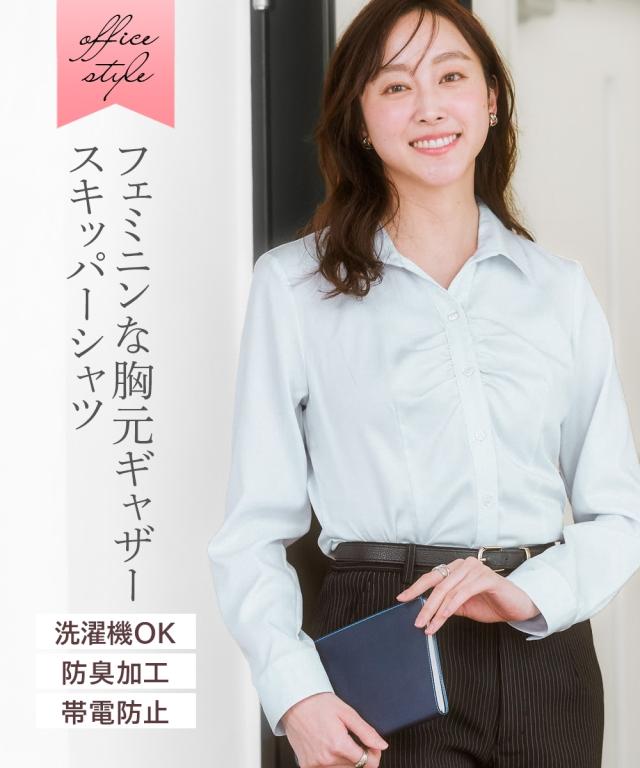 【事務服・会社制服】胸ギャザーパウダーサテンスキッパーシャツ(帯電防止・抗菌防臭加工)