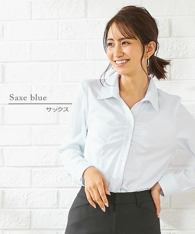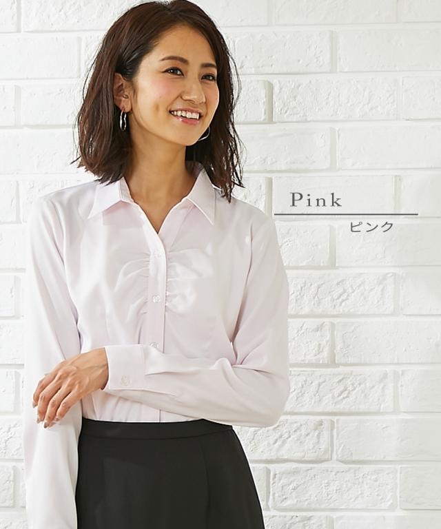 事務服 ブラウス シャツ レディース 会社制服 胸ギャザーパウダーサテンスキッパー 帯電防止 抗菌防臭 加工 春 夏 秋 | 4L/5L/6L | ニッセン nissen