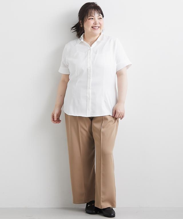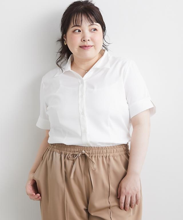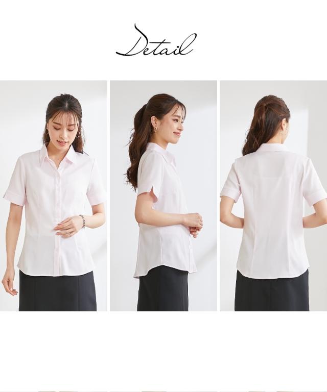 事務服 ブラウス シャツ レディース 会社制服 半袖 パウダーサテンスキッパー 帯電防止 抗菌防臭 加工 夏 スーツインナー | S/M/L | ニッセン nissen