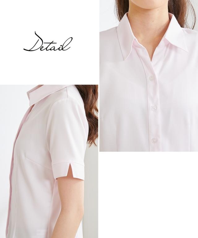 【事務服・会社制服】半袖パウダーサテンスキッパーシャツ(帯電防止・抗菌防臭加工)