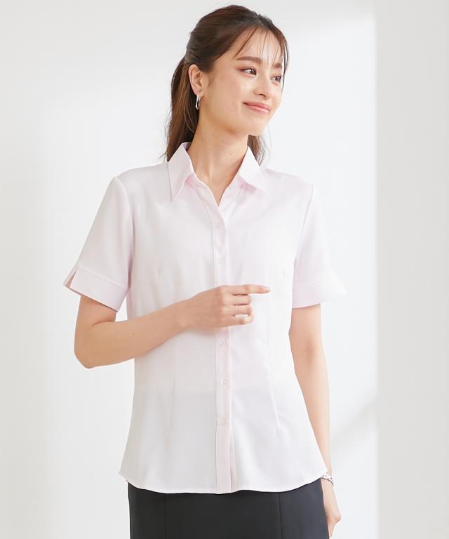 【事務服・会社制服】半袖パウダーサテンスキッパーシャツ(帯電防止・抗菌防臭加工)