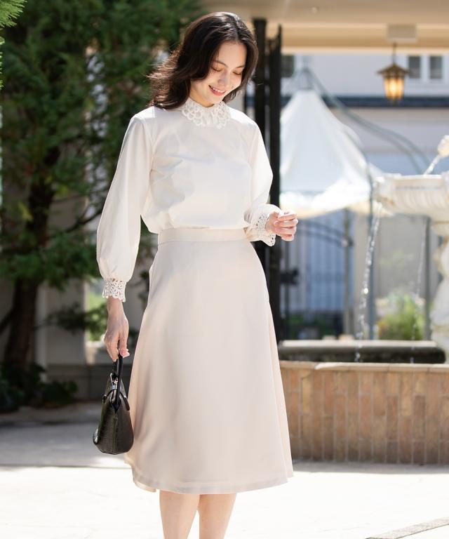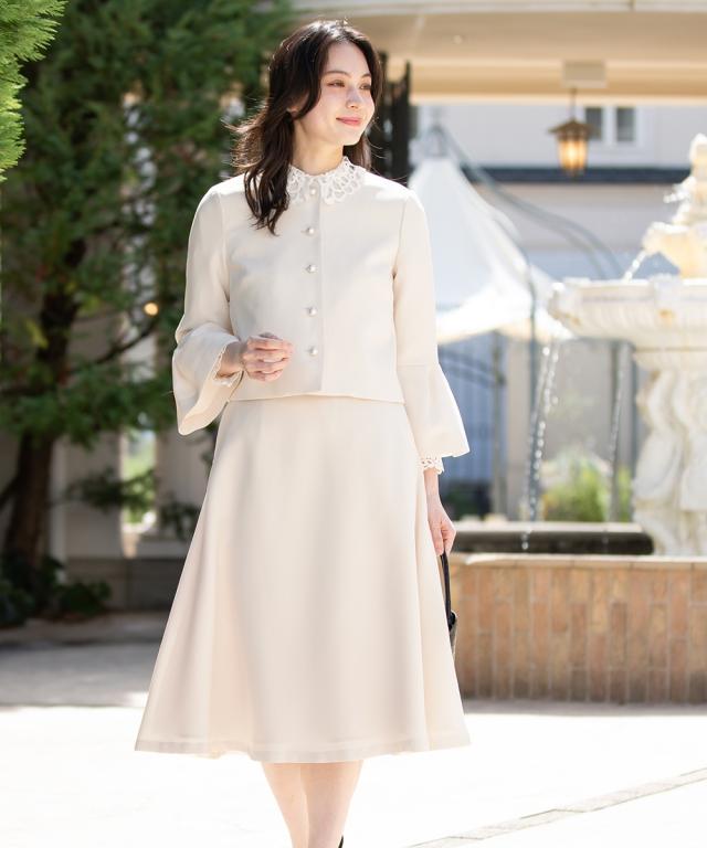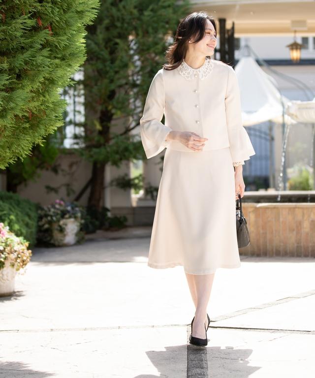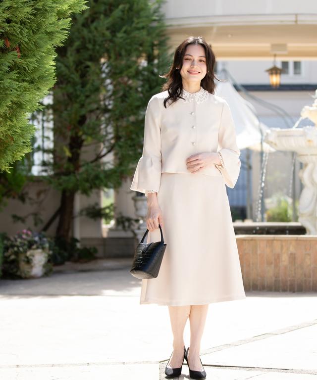 スーツ フォーマル レディース 入学式 卒業式 洗える パール釦使い袖タック デザイン ジャケット +フレア スカート セットアップ 春 夏 秋 冬 ニッセン nissen