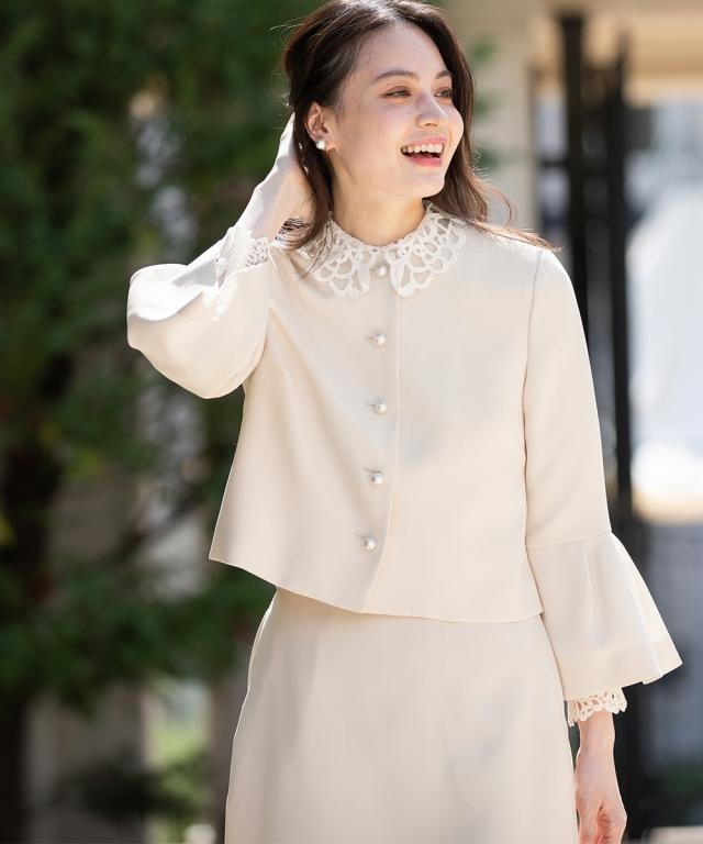 <定番の王道> 格式高い上品な装いを、大切にされる方へ ハレの日を彩る王道セレモニースタイル こだわりポイント 上品で表面感のあるドビー生地を使用した定番スカートセットアップスーツ 王道のセレモニースタイルを、今っぽくブラッシュアップ パール調ボタンが可愛いノーカラージャケットで、きちんと感を演出 袖部分にタックデザインを入れることで、こなれ感をプラス スカート丈を少し長くして、イメージを今っぽく刷新 大人っぽいスカートスタイルで、上品な着こなしに ジャケット・スカートはそれぞれ単品使いできます ジャケット・スカートには、小物収納できる便利なポケット付き セレモニーシーンだけでなく、 結婚式・参観日・七五三・普段使いなど幅広いシーンに対応できるスカートスーツセットアップスーツです。 体型ポイント 膝見えをカバーしてくれる安心 スカートにはウエスト後ろゴム入りで、着用しやすい仕様に ウエスト切替でスタイリッシュな印象に おすすめ着用シーン 【入学式】【卒業式】【参観日】【七五三】【結婚式】【お呼ばれ】【食事会】など様々なシーンでご利用いただけます。 注意コメント デザインによりサイズ感が異なりますので、詳しい仕立てサイズ表を