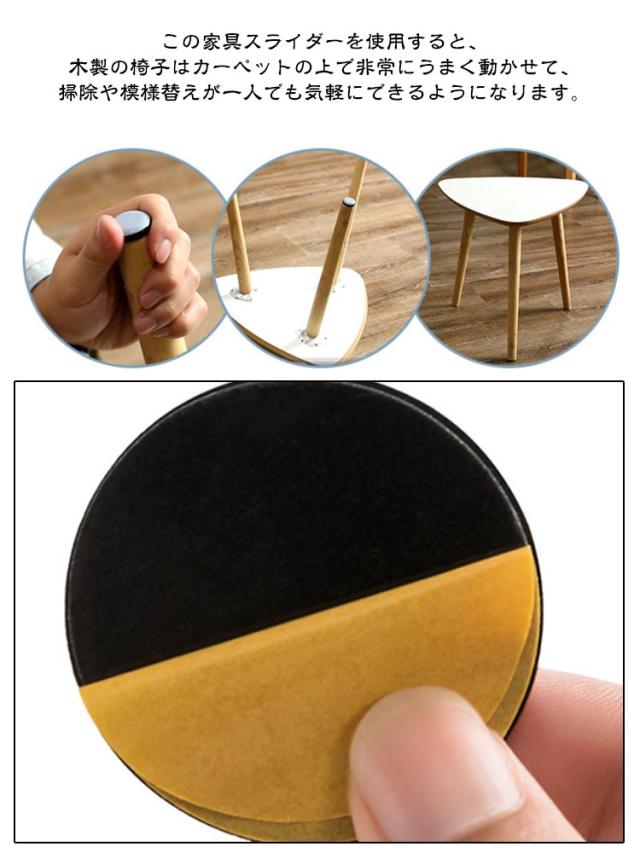 | 粘着テープ式、滑るタイプ椅子脚キャップ。(16個セット) 椅子脚カバーは椅子脚をしっかり保護し、騒音を防止して快適な環境を提供します。 こちらの椅子脚キャップはフローリング、カーペットやクッションフロアーなど滑りにくい床でも動かしやすいです。家具の脚にカバーを取り付けて、お掃除をする時に家具の移動が楽々! この家具スライダーを使用すると、木製の椅子はカーペットの上で非常にうまく動かせて、掃除や模様替えが一人でも気軽にできるようになります。 重い椅子の足で家具移動パッドをつければ、床が傷つかずにキズ・ニック・へこみから保護できます。移動する際の騒音にも有効的に防ぎます。 すべり面はPTFEを採用して作られた家具スライダーは耐高温性や耐食性がよいです。 耐久性と耐摩耗性があり、椅子、テーブル、キャビネット、ソファーなど広く使用できます。 | |