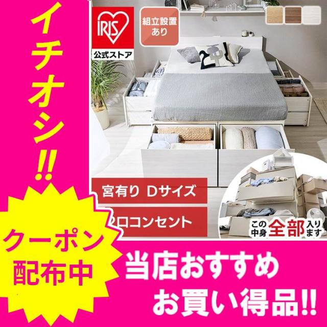 \23,000円OFFクーポン!~4/6 9:59/\組立設置サービス込み/ベッド ダブル 収納 大容量 超収納 引出し 8個 棚 2口コンセント 布団 洋服 小物収納 ベット フレーム ヘッドボード 宮付き ハイタイプ 新生活 収納付ベッド 超収納ベッド アイリスオーヤマ CSB02-D * (HS)