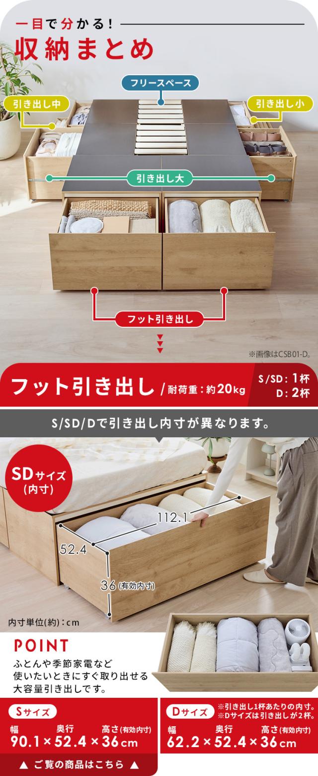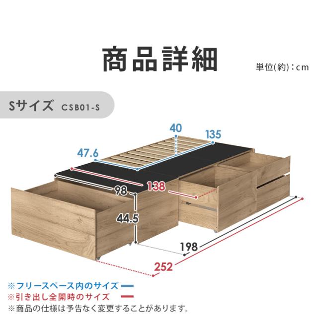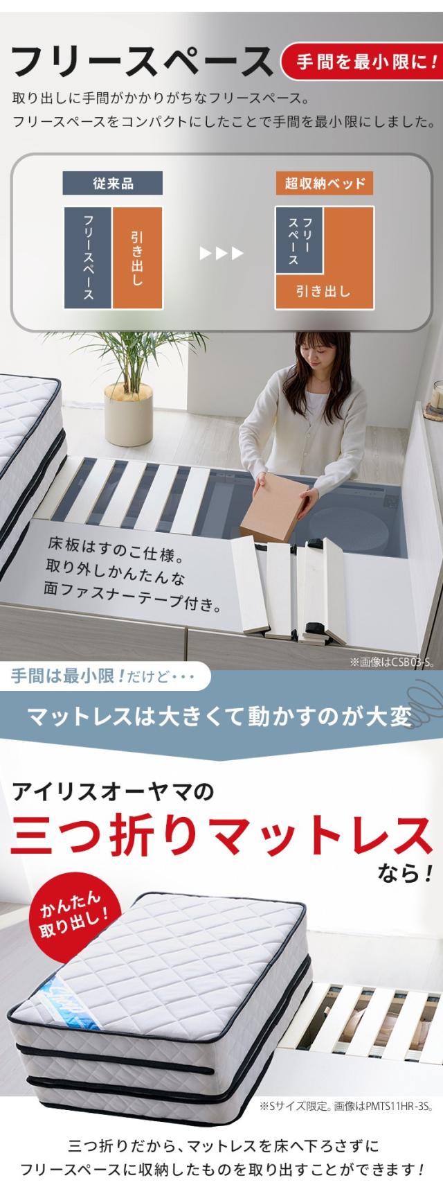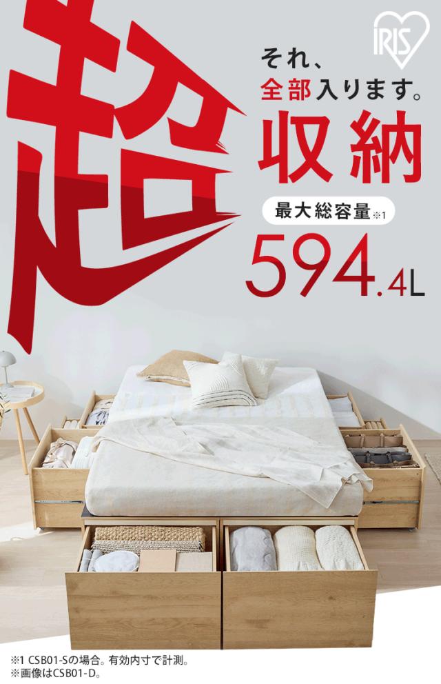 ベッド シングル 収納 大容量 超収納 引出し 4個 滑り止め付 布団 洋服 家電 小物収納 ベッドフレーム ヘッドレス ヘッドボードなし ハイタイプ 新生活 一人暮らし ベット 収納付ベッド 超収納ベッド アイリスオーヤマ CSB01-S *