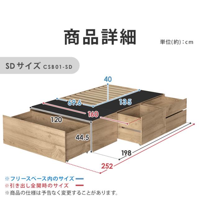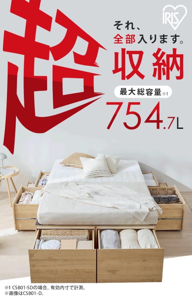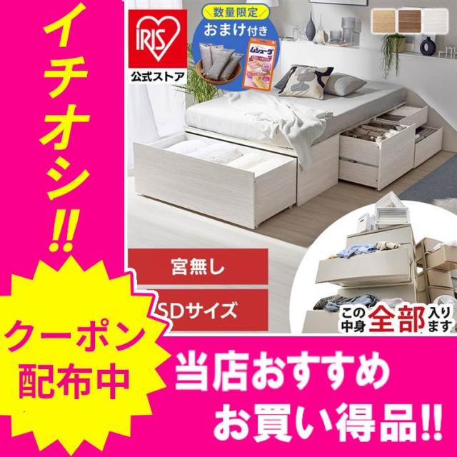 \5500円OFFクーポン!~4/6 9:59/ベッド セミダブル 収納 大容量 超収納 引出し 4個 滑り止め付 布団 洋服 家電 小物収納 ベッドフレーム ヘッドレス ヘッドボードなし ハイタイプ 新生活 一人暮らし ベット 収納付ベッド 超収納ベッド アイリスオーヤマ CSB01-SD *