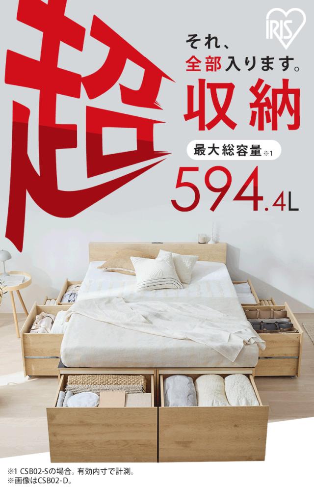 \12,000円OFFクーポン!~4/6 9:59/ベッド シングル 収納 大容量 超収納 引出し 4個 棚 2口コンセント 滑り止め付 布団 洋服 家電 小物収納 ベッドフレーム ヘッドボード 宮付き ハイタイプ 新生活 ベット 収納付ベッド 超収納ベッド アイリスオーヤマ CSB02-S *