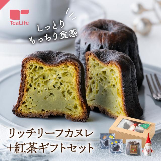リッチリーフカヌレ+紅茶ギフトセット クリスマス ギフト プレゼント カヌレ 大きい 焼き菓子 洋菓子 フランス菓子 リッチリーフカヌレ 2個 エディブルフラワー 紅茶 ダージリン ストロベリー 2種各1個 プチギフト 贈り物 クリスマス限定