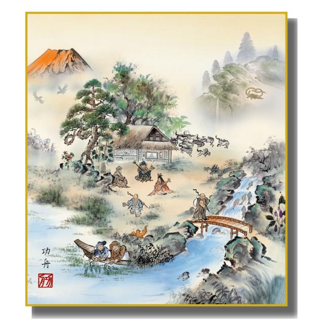 色紙絵 開運画 [四神満願図] 瀬田功舟 特色工芸色紙 [K9-062]
