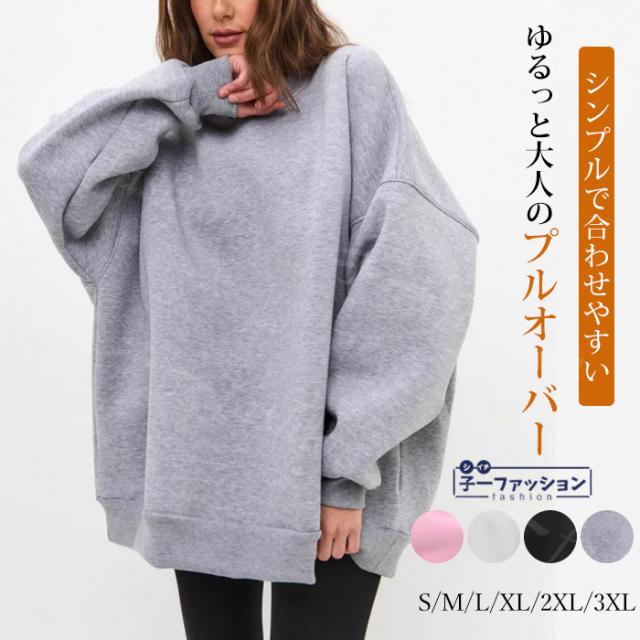 <72H限定・1点2,890円!クーポン利用で>トレーナー スウェット 長袖 冬新作 プルオーバーロング Tシャツ tシャツ 体型カバー 無地 レディース 長袖 大きいサイズ トップス ゆったり 春秋冬 通勤 通学 敬老の日 送料無料