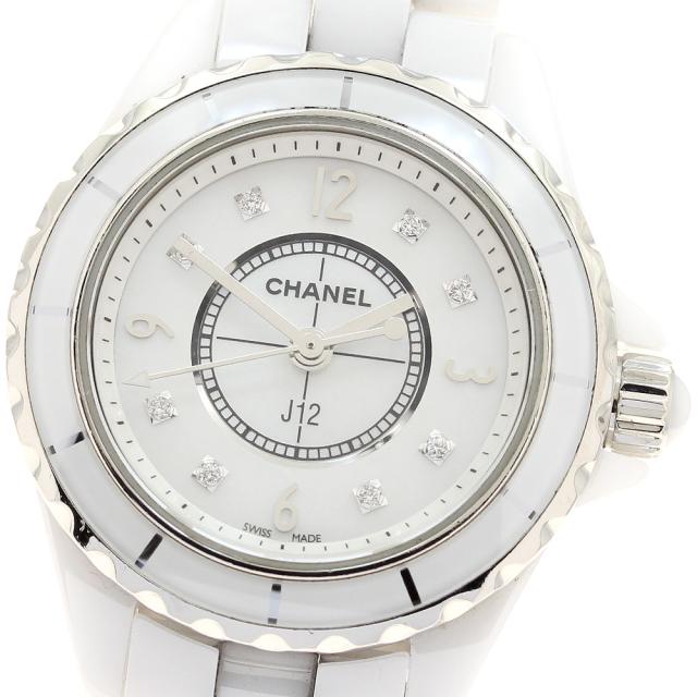 シャネル CHANEL H2570 J12 ホワイトセラミック 8Pダイヤ クォーツ レディース 良品 保証書付き_921794