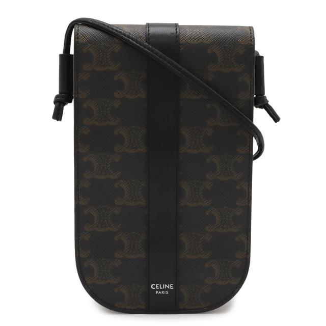 CELINE セリーヌ トリオンフ モバイルポーチ フォンポーチ スマホケース ショルダーバッグ ポシェット PVC レザー ブラック 黒 10H742DCH.38SI