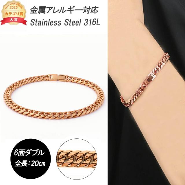 喜平 ブレスレット K18 カラー ステンレス 6面 6面ダブル 20cm キヘイブレスレット サージカルステンレス 316L 18金 ダブル キヘイ メンズ ジュエリー アクセサリー レディース 男女兼用 金属アレルギー メンズブレスレット プレゼント 男性 女性 誕生日 ギフト ホワイトデー