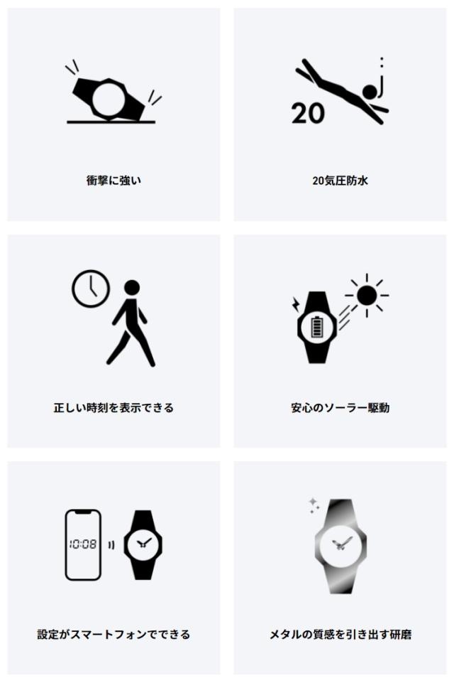 ※ スマートフォンと連携しない場合は、通常のクオーツ精度(平均月差±15秒)で動作します。