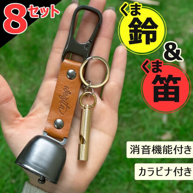 8個セット熊よけ鈴 ホイッスル付き くま クマ 鈴 ベル 熊鈴 熊避け 消音機能付き 笛 熊笛 カラビナ付き ストラップ キーホルダー 登山 対策 グッズ キャンプ 遭難 鹿 ハイキング 農作業 セット アウトドア PUレザー 鉄 大音量 動物 吊り下げ フック バッグ 鞄 山登り