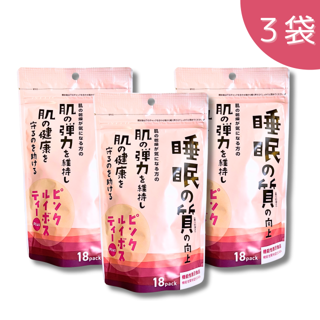 【機能性表示食品】ピンクルイボスティープラス Plus(ピンクルイボスティー)18包 小川生薬 ノンカフェイン GABA配合 睡眠の質 肌の弾力 3袋セット