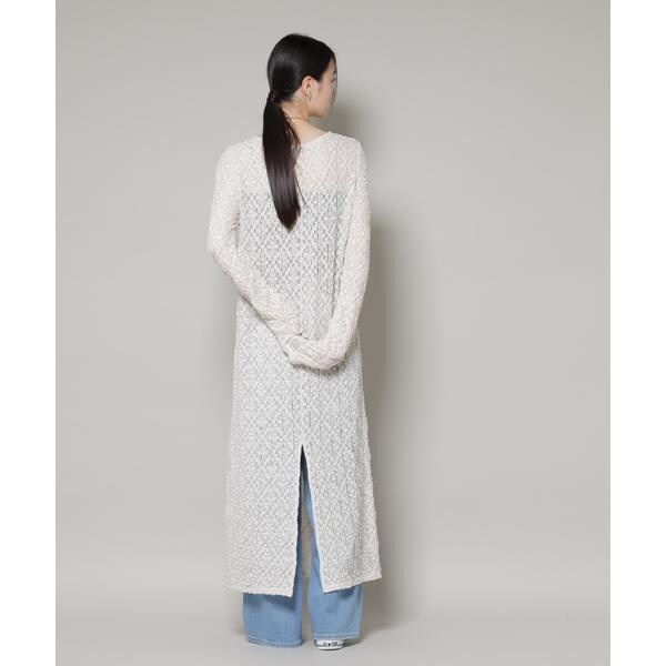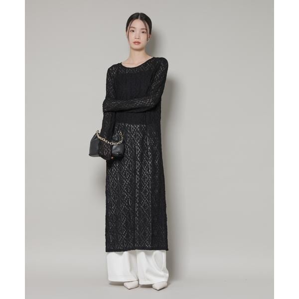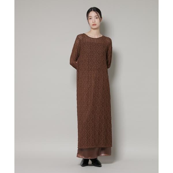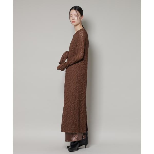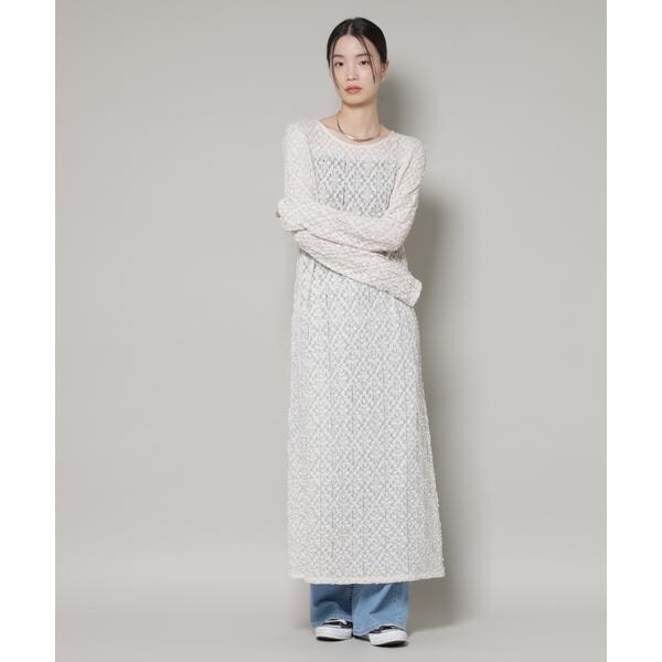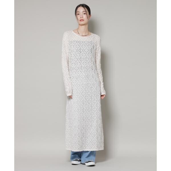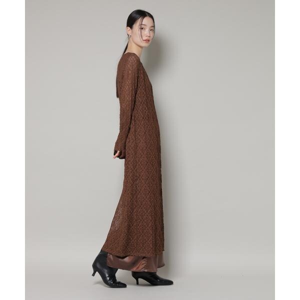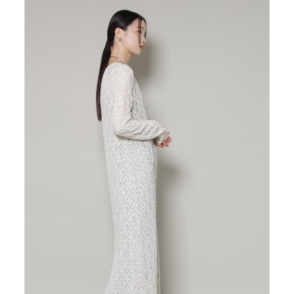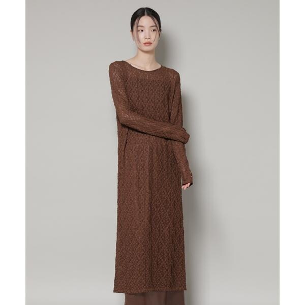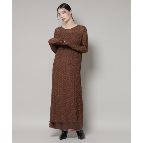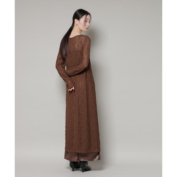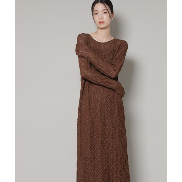フェミニンなレイヤードスタイルを楽しめるカットレースのマキシワンピース。伸縮性があるので動きやすく、ポコポコした立体感のある素材が華やぎを演出してくれるアイテムです。