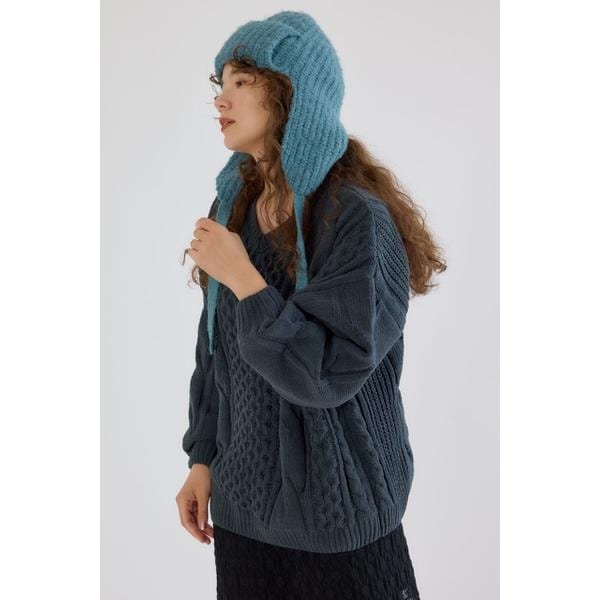 Vネックモールニットトップス