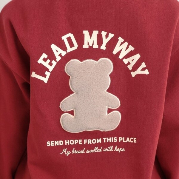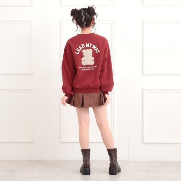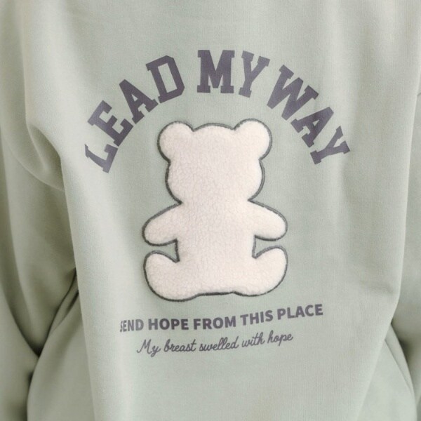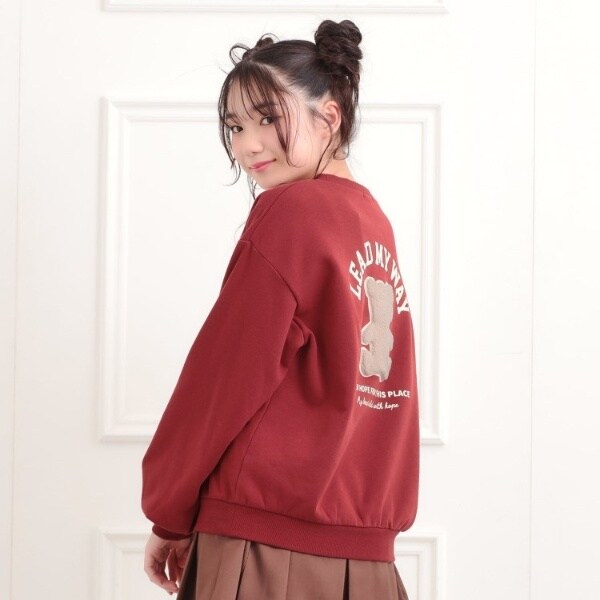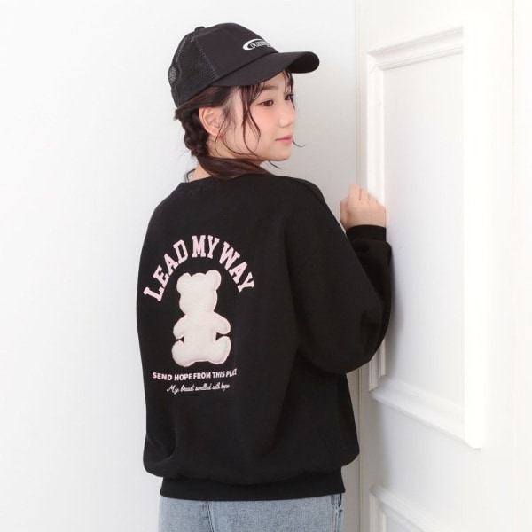 背中のくま型アップリケがもこもこで可愛いトレーナー。