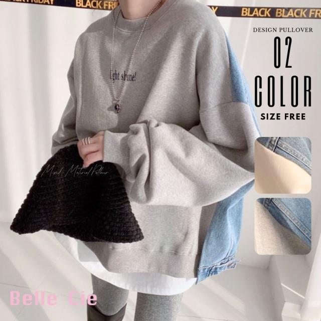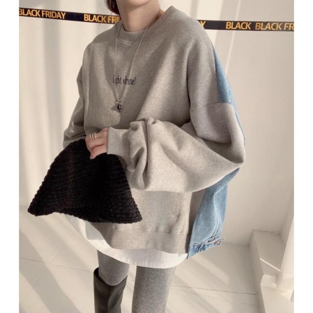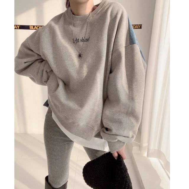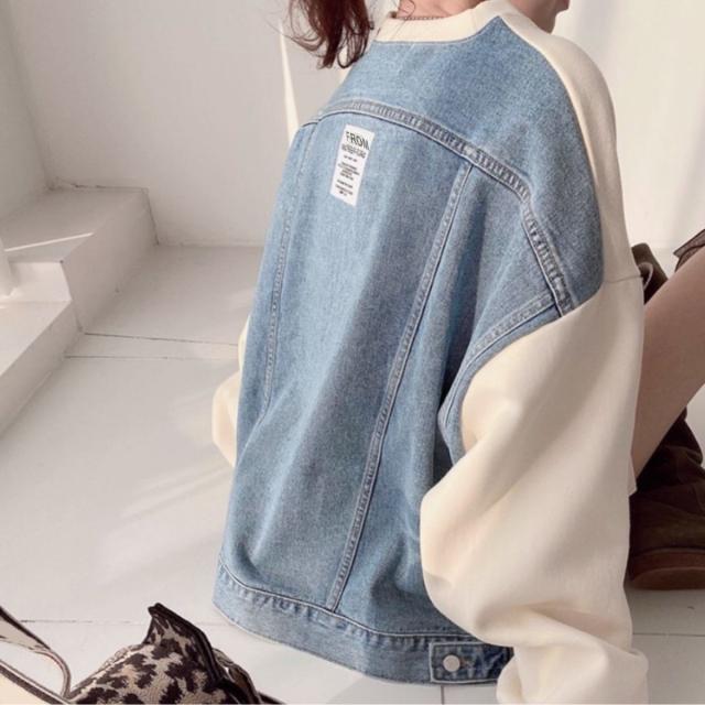 【デニム×スウェット切り替え】 トップス プルオーバー トレーナー クルーネック スウェット 裏起毛 デニム レディース 韓国ファッション ストリート デニム切替 スウェット ゆったり ゆるダボ 秋冬
