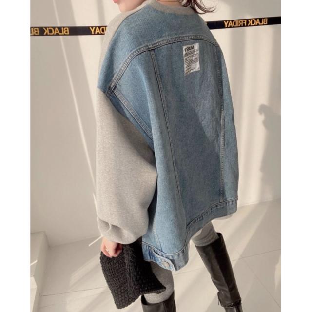 -デニム切替がおしゃれな韓国風スウェットジャケット