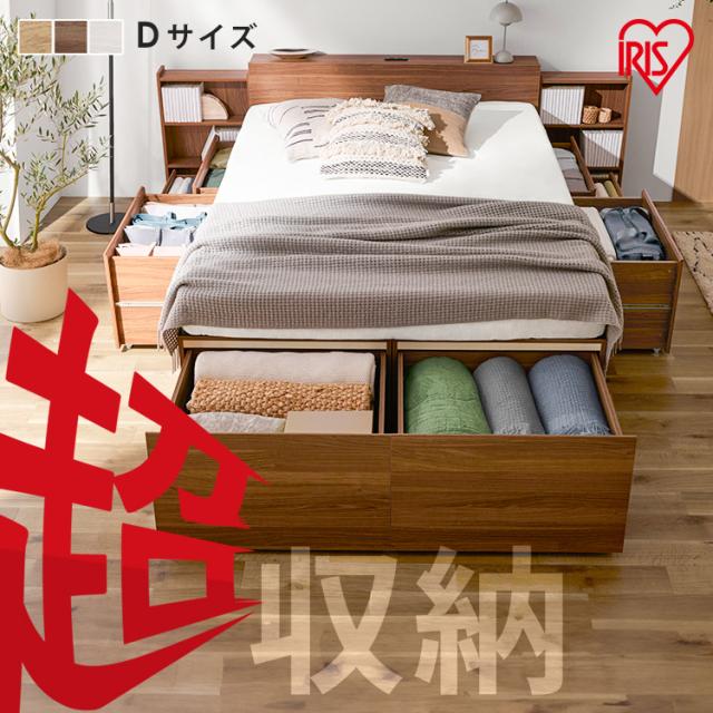 ベッド ダブル 収納 大容量 超収納 引出し 10個 棚 2口コンセント付 スライド本棚 布団 洋服 家電 小物収納 ベッドフレーム ヘッドボード 宮付き ハイタイプ チェストベッド 新生活 ベット 収納付ベッド 超収納ベッド アイリスオーヤマ CSB03-D *