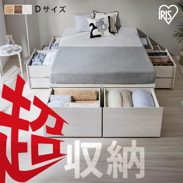 ベッド ダブル 収納 大容量 超収納 引出し 8個 滑り止め付 布団 洋服 家電 小物収納 ベッドフレーム ヘッドレス ヘッドボードなし ハイタイプ チェストベッド 新生活 2人暮らし ベット 収納付ベッド 超収納ベッド アイリスオーヤマ CSB01-D *