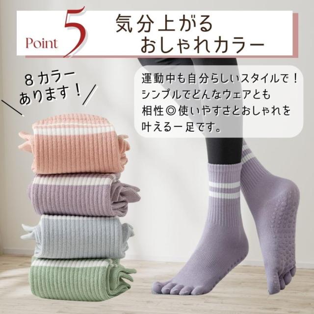 ヨガソックス ピラティスソックス 5本指 ヨガ靴下 滑り止め 靴下 スポーツ すべり止め レディース 冷え予防 おしゃれ 黒 綿 五本指