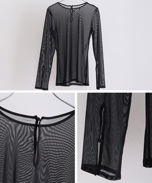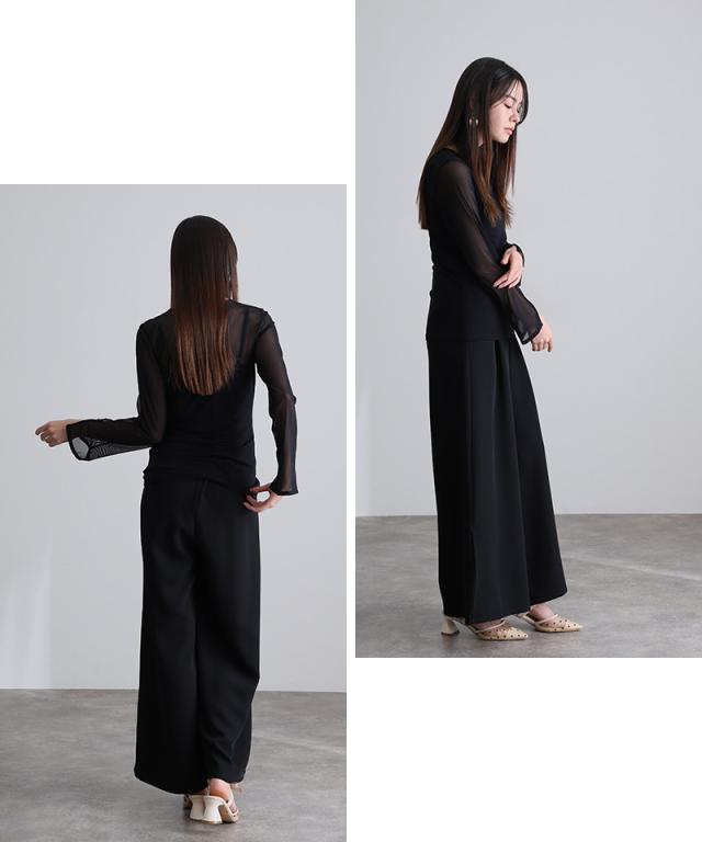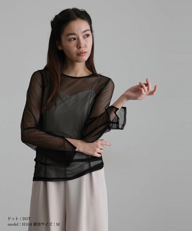 503251920 水玉 フェミニン 普段着に スリット 20代 体型カバー 着回し デート デイリー 大きめ 大きい 大人 シルエット お出かけ お出掛け着 黒 シアー ナチュラル 40代 長袖 七分袖 7分袖