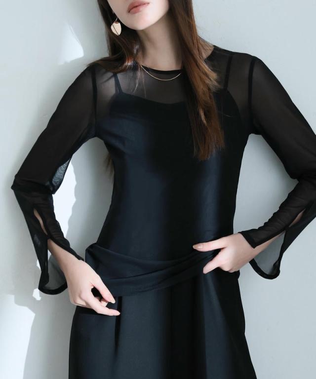 袖スリットシアートップス【503251920】20代・30代・40代・50代・トップス・レディース・カジュアル・半袖・長袖・七分・ノースリーブ・肩出し・Vネック・シンプル・薄手・厚手・無地・刺繍・花柄・可愛い・伸縮性・キレイめ・着やせ・重ね着風・新作・レース・上品・セットアップ・ビジュー・体型カバー・スタイルアップ・小さいサイズ・3Lや4L・即日発送・送料無料・オフィス・ワーク・オールシーズン・デイリー・普段着・オケージョン・セミフォーマル・婚活・顔合わせ・同窓会・お呼ばれ・食事会・謝恩会・親族・七五三・お宮参り・冠婚葬祭・弔事・女子会・デート・入学式・卒業式・入園式・ママ