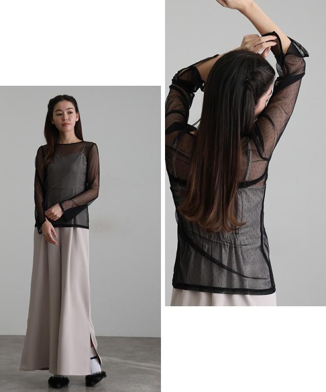 プレーン・ドット・レースの異なる表情を楽しめる、着映え力の高いシアートップス。