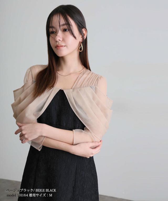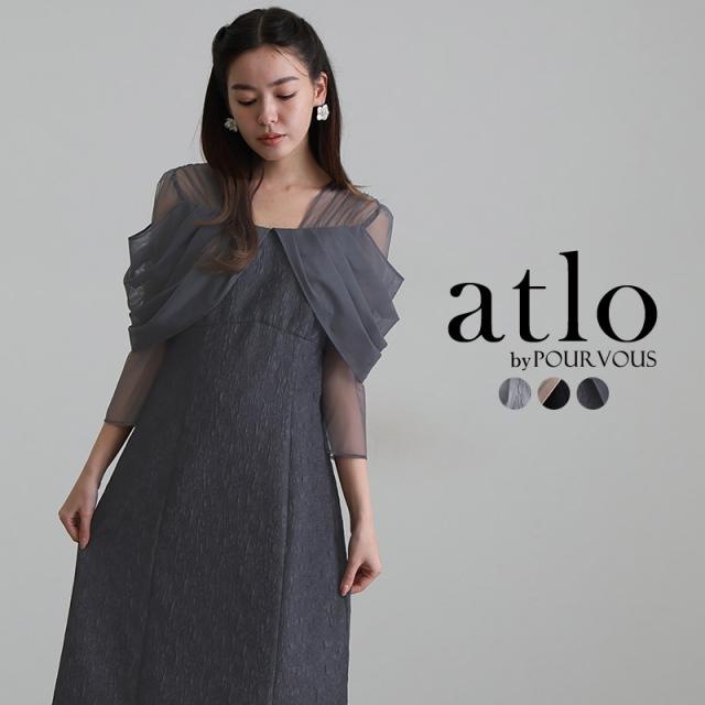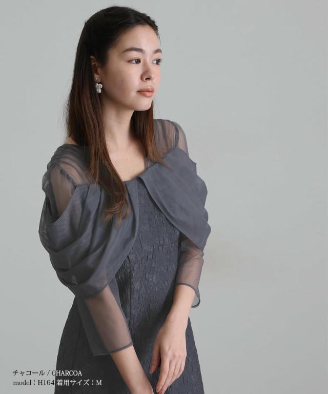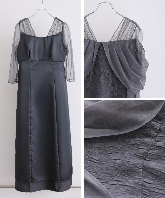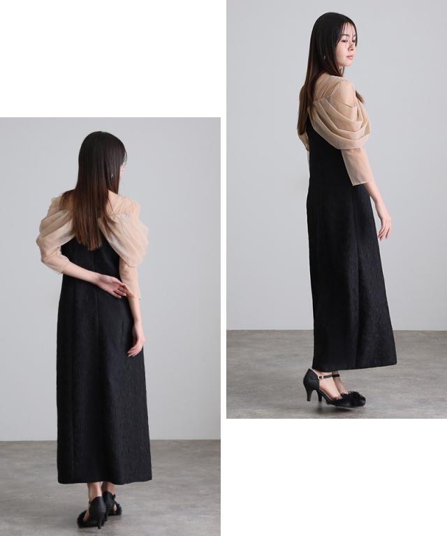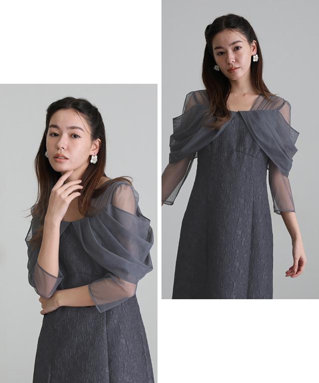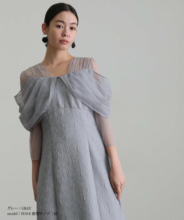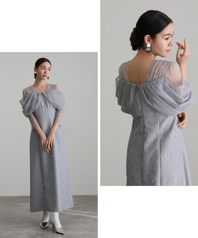 チュールドレープジャガードドレス【549252178】10代・20代・30代・40代・50代・ドレスワンピ・フォーマルワンピ・パンツドレス・服装・ワンピース・ドレスカジュアル・ブランド・七分袖・長袖・ロング・膝丈・薄手・厚手・無地・刺繍・脚長効果・伸縮性・キレイめ・着やせ・体型カバー・スタイルアップ・レース・リボン・ドレープ・小さいサイズ・3Lや4L・かっこいい・かわいい・即日発送・送料無料・結婚式・婚活・披露宴・顔合わせ・発表会・演奏会・二次会・同窓会・お呼ばれ・食事会・謝恩会・親族・七五三・お宮参り・冠婚葬祭・弔事・女子会・韓国・デート・入学式・卒業式・入園式・卒園式・ママ・ピアノ・マタニティー・セレモニー・セレブ・パーティー