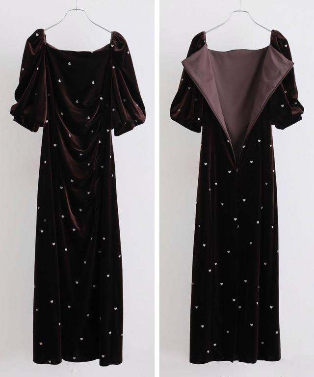 551252125 ハート ベロア ワンピース パーティードレス オケージョン 大きいサイズ 結婚式 ドレス かっこいい お呼ばれ オケージョンドレス フォーマル 体型カバー 20代 30代 40代 韓国