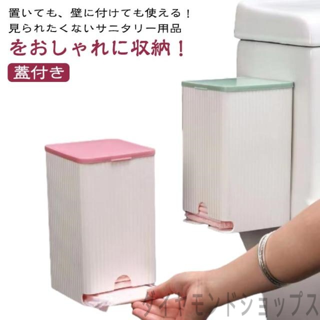 ナプキン 壁掛け収納 収納ボックス サニタリー収納ケース 生理用品 洗面所 ナプキン収納ボックス サニタリー収納ホルダー 粘着フック付き ストッカー ふた 蓋付き 小物入れ サニタリー収納 サニタリー用品 トイレ収納 収納ボックス 防塵