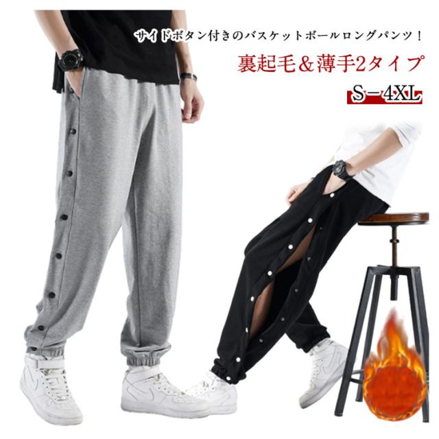 裏起毛と薄手2タイプ スナップボタン キッズ 大人 長ズボン バスケットパンツ サイドボタン バスパン ジュニア 男の子 裾ボタン スウェット 裏起毛 女の子 ロングパンツ 裏起毛と薄手2タイプ スウェットパンツ 冬 保温 暖かい