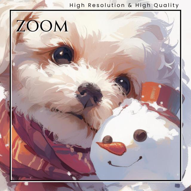【雪犬戯舞 - トイプードル犬 No.2】クリスマス・冬・雪だるま・子犬・ペットロス・うちの子・記念日・アートポスター・犬の絵・犬のイラスト・ギフト・プレゼント