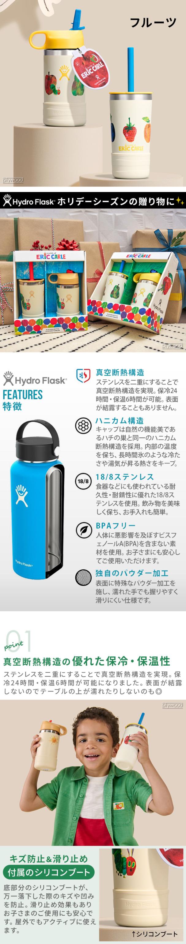 数量限定 はらぺこあおむし 水筒 キッズ ストロー 直飲み 子供用 ハイドロフラスク キッズ ワイドマウス ボトル 354ml Hydro Flask ERIC CARLE KIDS WIDE MOUTH BOTTLE 12oz エリックカール 限定コレクション 保温 保冷 ステンレス おしゃれ 送料無料