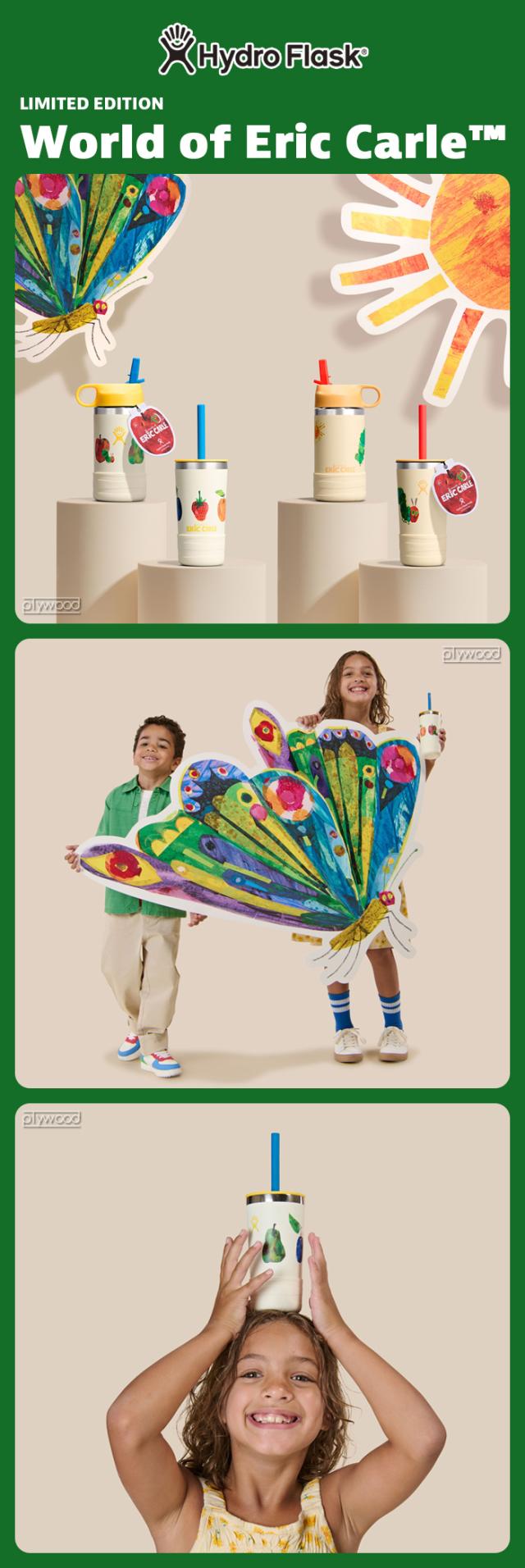 名作「はらぺこあおむし」をはじめ、長年絵本作家兼アーティストとして愛され続けてきたエリック・カールと、ハイドロフラスクのコラボレーションが実現!KIDSの12ozサイズのワイドマウスとストロー付きタンブラーの2型に加え、ギフトにおすすめのオリジナルBOXセットも展開。