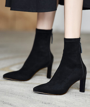 スエード調ショートブーツ 太ヒールブーツ